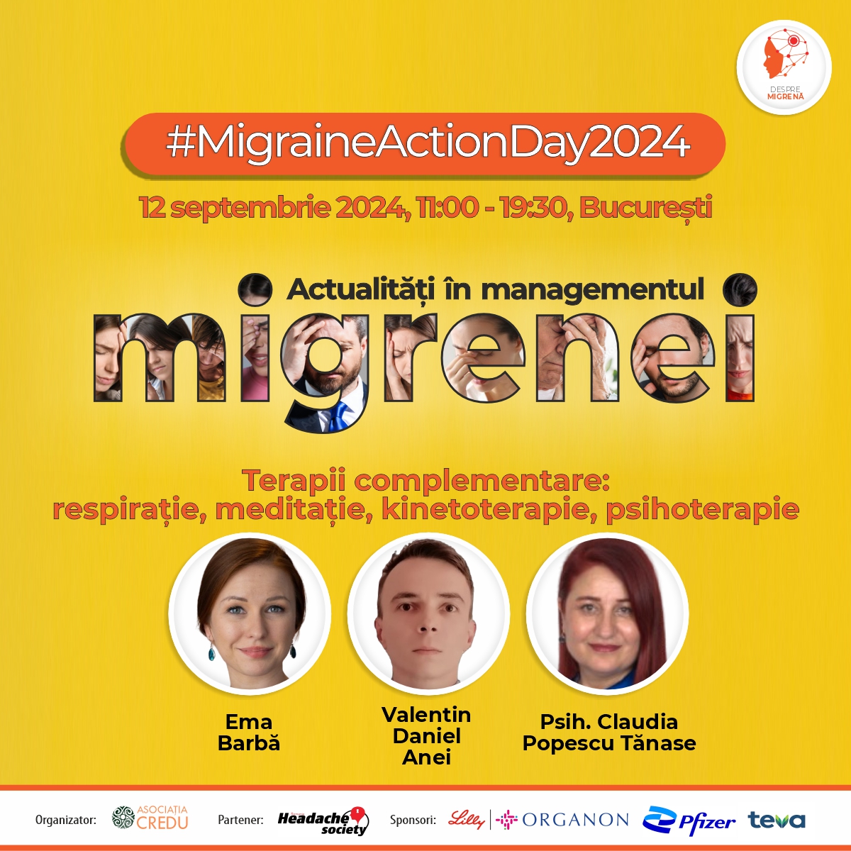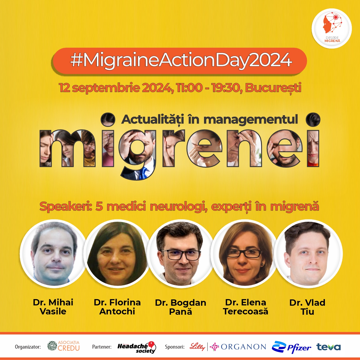 Evenimentul a fost precedat de un webinar online, susținut pe data de 4 septembrie 2024, de către dna dr Adina Roceanu – neurolog Spitalul Universitar de Urgență București care a vorbit despre Migrenă și comorbidități (alte afecțiuni: epilepsie, tensiune arterială, depresie, obezitate etc.). Detalii AICI.
